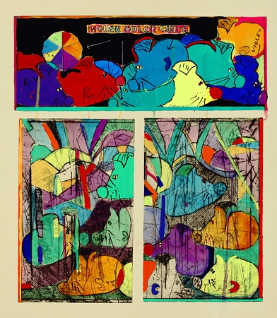 Toy Mouse Series (2004-2008) T.M.S. #2, 14" x 18" Acrylic and prismacolor pencil T.M.S. #7, 21" x 18" Drypoint, gouache, and watercolor T.M.S. #13, 22" x 19" Drypoint, acrylic and gouache The Good Father, 40" x 30" Acrylic and prismacolor pencil T.M.S. #16, 23" x 19" Drypoint and acrylic" Mouse Color Guide, 22" x 18" Drypoint, gouache and watercolor Tortuga de Judit, 25" x 37" Oil